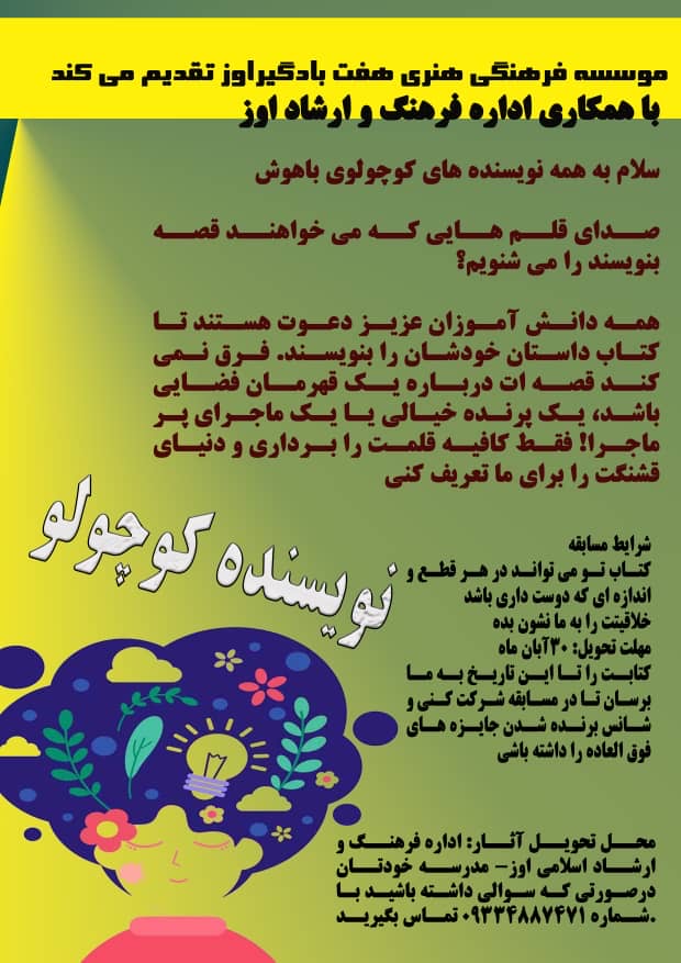 محل تحویل آثار : اداره فرهنگ و ارشاد اسلامی اوز یا مدرسه خودتان